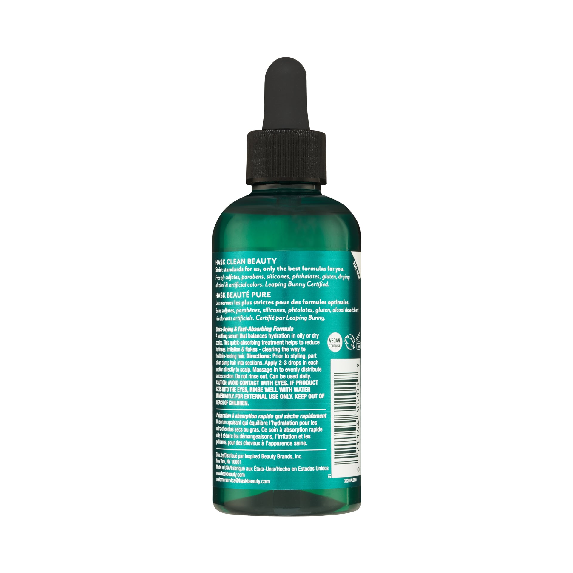 قبل التصفيف، قسّم الشعر النظيف والمبلل إلى أقسام. ضع قطرتين أو ثلاث قطرات على كل قسم مباشرة على فروة الرأس. دلكه لتوزيعه بالتساوي على كامل الشعر. لا تشطفه. يمكن استخدامه يوميًا.